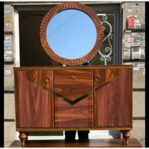 آینه کنسول ترکیبی از یک میز یا کمد باریک (کنسول) به همراه یک آینه بزرگ است که معمولاً به دیوار تکیه دارد یا بهصورت دیواری نصب میشود. این محصول هم کاربرد تزیینی دارد و هم فضای ذخیرهسازی یا سطحی برای قرار دادن وسایل مختلف را فراهم میکند.