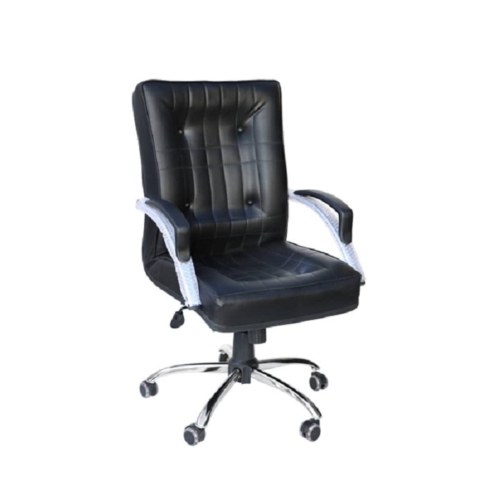 صندلی اداری کارمندی مدل آسایش تنها به عملکرد محدود نمیشود؛ ظاهر آن نیز چشمنواز است. روکش از چرم مصنوعی (PU) با کیفیت بالا و ضدآب ساخته شده که تمیز کردن آن آسان است و در برابر لکهها مقاوم. دوختهای دقیق با نخهای مقاوم، همراه با دکمههای تزئینی روی پشتی، حس لوکس بودن را القا میکند. پایه کرومی براق با پنج پره، ثبات عالی فراهم میآورد و دستههای ارگونومیک با پد فومی نرم، حمایت کاملی از بازوها میدهند. رنگ مشکی کلاسیک، این صندلی را با هر دکوراسیونی – از مدرن تا سنتی – هماهنگ میکند.